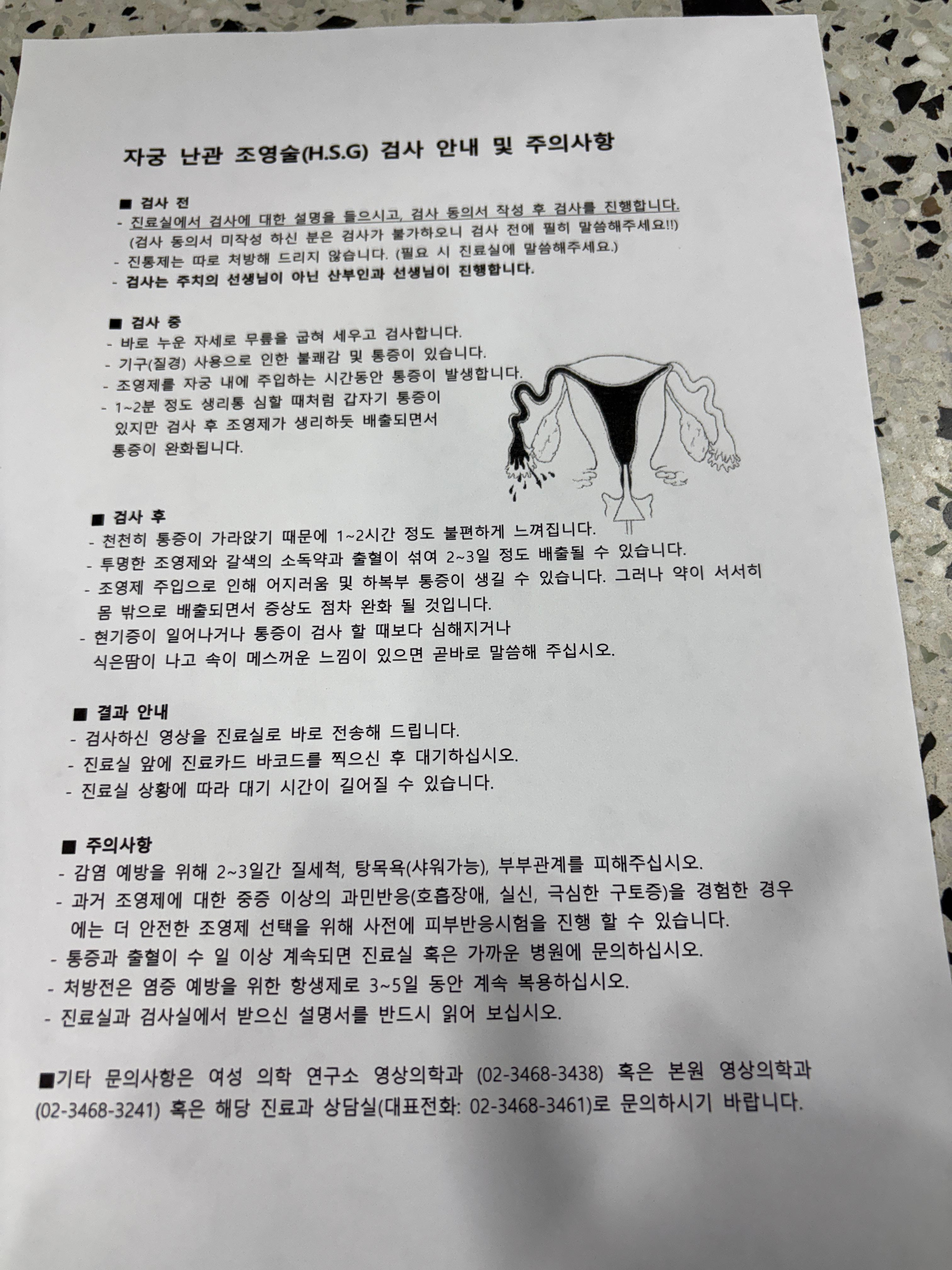 이날 도착하자마자 초음파검사 먼저 받고 다음은 진료실앞에서 대기하다가 나팔관조영술 안내를 받고